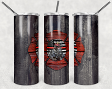 Dark Wood Background Firefighter 20 oz Skinny Sublimation Tumbler