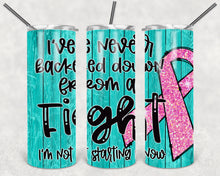 I've Never Backed Down From a Fight Breast Cancer 20 oz Skinny Sublimation Tumbler