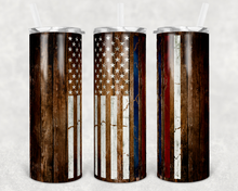Thin Red Line Thin Blue Line Flag on Wood 20 oz Skinny Sublimation Tumbler