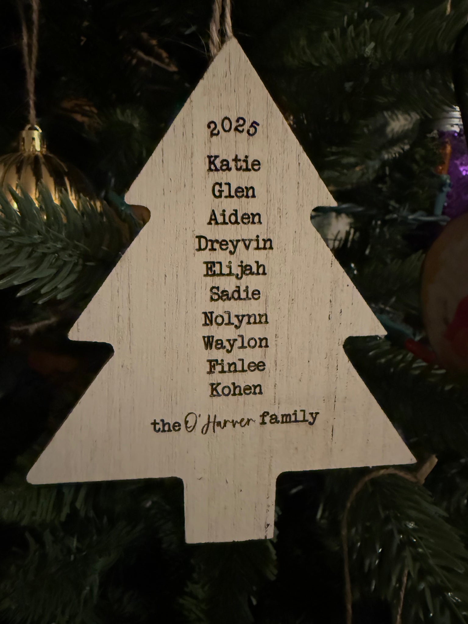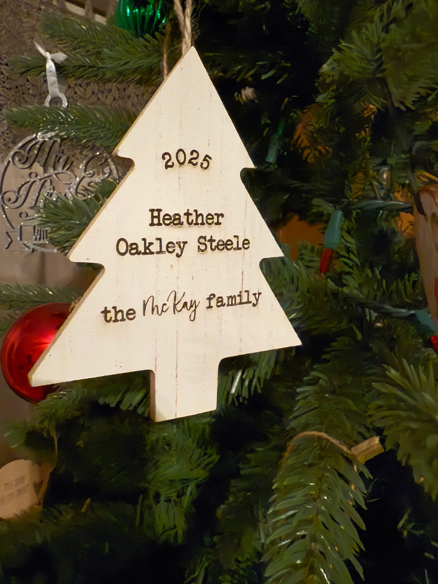 Choose from Tree or Bulb shape for your personalized ornament. Make sure to double check spelling, and separate each name with a comma.